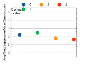 >>> # Example plotting a single value >>> import torch >>> from torchmetrics.audio import DeepNoiseSuppressionMeanOpinionScore >>> metric = DeepNoiseSuppressionMeanOpinionScore(8000, False) >>> metric.update(torch.rand(8000)) >>> fig_, ax_ = metric.plot()
