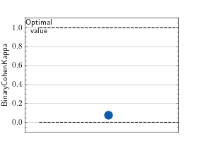>>> from torch import rand, randint >>> # Example plotting a single value >>> from torchmetrics.classification import BinaryCohenKappa >>> metric = BinaryCohenKappa() >>> metric.update(rand(10), randint(2,(10,))) >>> fig_, ax_ = metric.plot()