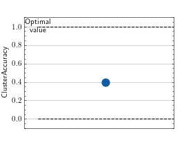 \[\text{Cluster Accuracy} = \max_g \frac{1}{N} \sum_{n=1}^N \mathbb{1}_{g(p_n) = t_n}\]Where \(g\) is a function that maps predicted clusters \(p\) to target clusters \(t\), \(N\) is the number of samples, \(p_n\) is the predicted cluster for sample \(n\), \(t_n\) is the target cluster for sample \(n\), and \(\mathbb{1}\) is the indicator function. The function \(g\) is determined by solving the linear sum assignment problem.