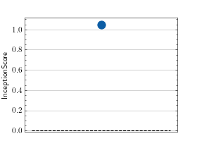 \[IS = exp(\mathbb{E}_x KL(p(y | x ) || p(y)))\]where \(KL(p(y | x) || p(y))\) is the KL divergence between the conditional distribution \(p(y|x)\) and the marginal distribution \(p(y)\). Both the conditional and marginal distribution is calculated from features extracted from the images. The score is calculated on random splits of the images such that both a mean and standard deviation of the score are returned. The metric was originally proposed in inception ref1.