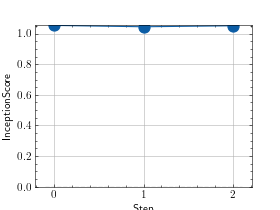 >>> # Example plotting multiple values >>> import torch >>> from torchmetrics.image.inception import InceptionScore >>> metric = InceptionScore() >>> values = [ ] >>> for _ in range(3): ... # we index by 0 such that only the mean value is plotted ... values.append(metric(torch.randint(0, 255, (50, 3, 299, 299), dtype=torch.uint8))[0]) >>> fig_, ax_ = metric.plot(values)